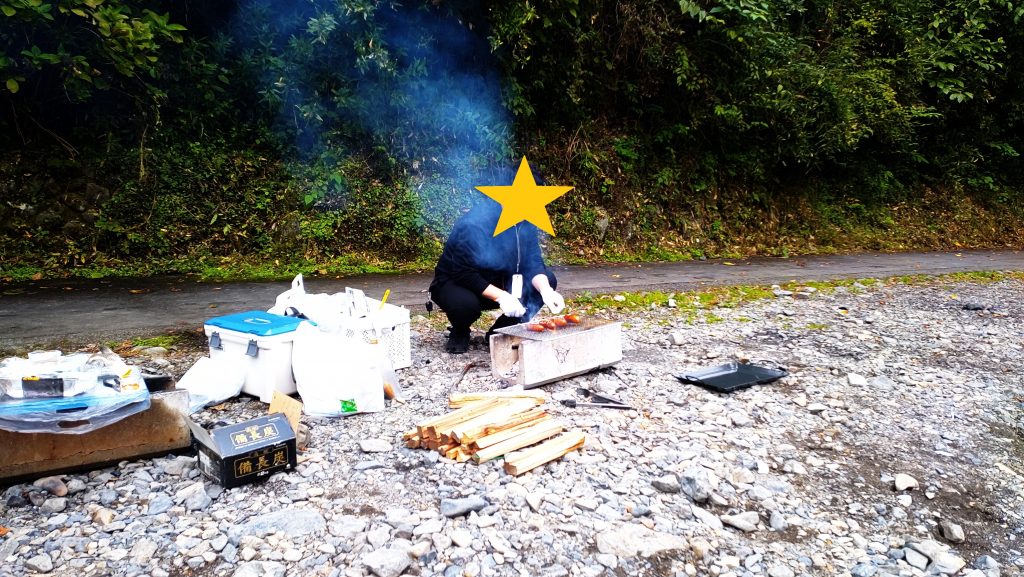 釣りの開始と同時にBBQの準備をします。
