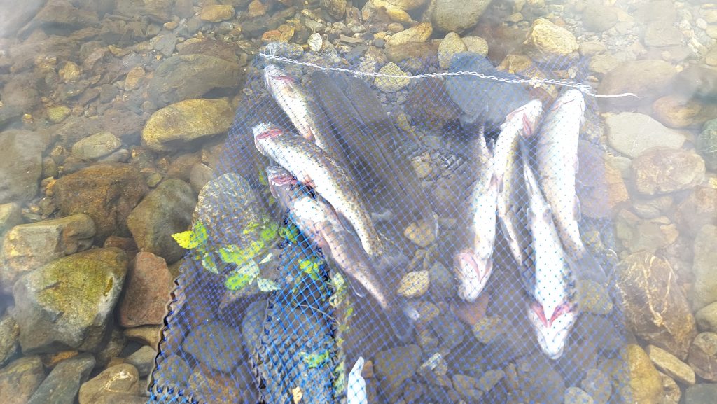 釣り場所を作ってあってそこにニジマスを放流して